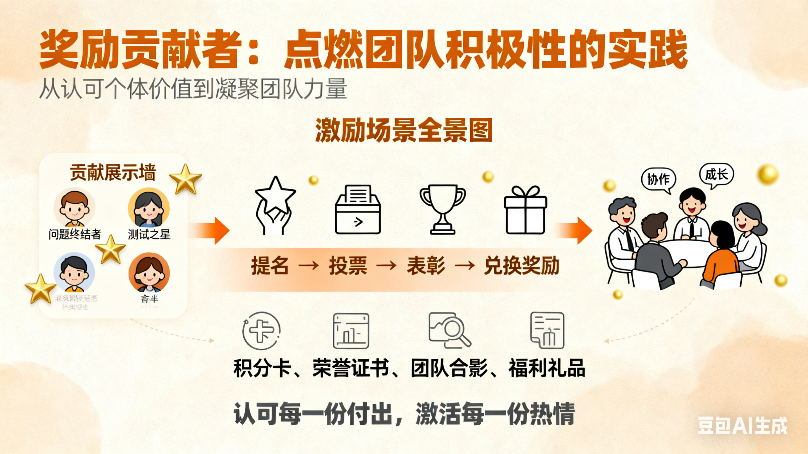 在负责产品上线时,作者发现团队成员的贡献常被忽视,导致积极性下降。为解决这一问题,作者推动建立“奖励贡献者”机制,包括每周线上表彰会、设立特色奖项、建立积分制兑换奖励,以及公开展示贡献者风采等。过程中遇到了形式主义、评选公平性、精神鼓励不足等质疑,作者用数据、明确评选规则、增加实物奖励等方式一一化解。最终产品上线顺利,团队士气大增,机制也被延续下来,形成“以贡献为荣”的良好氛围。